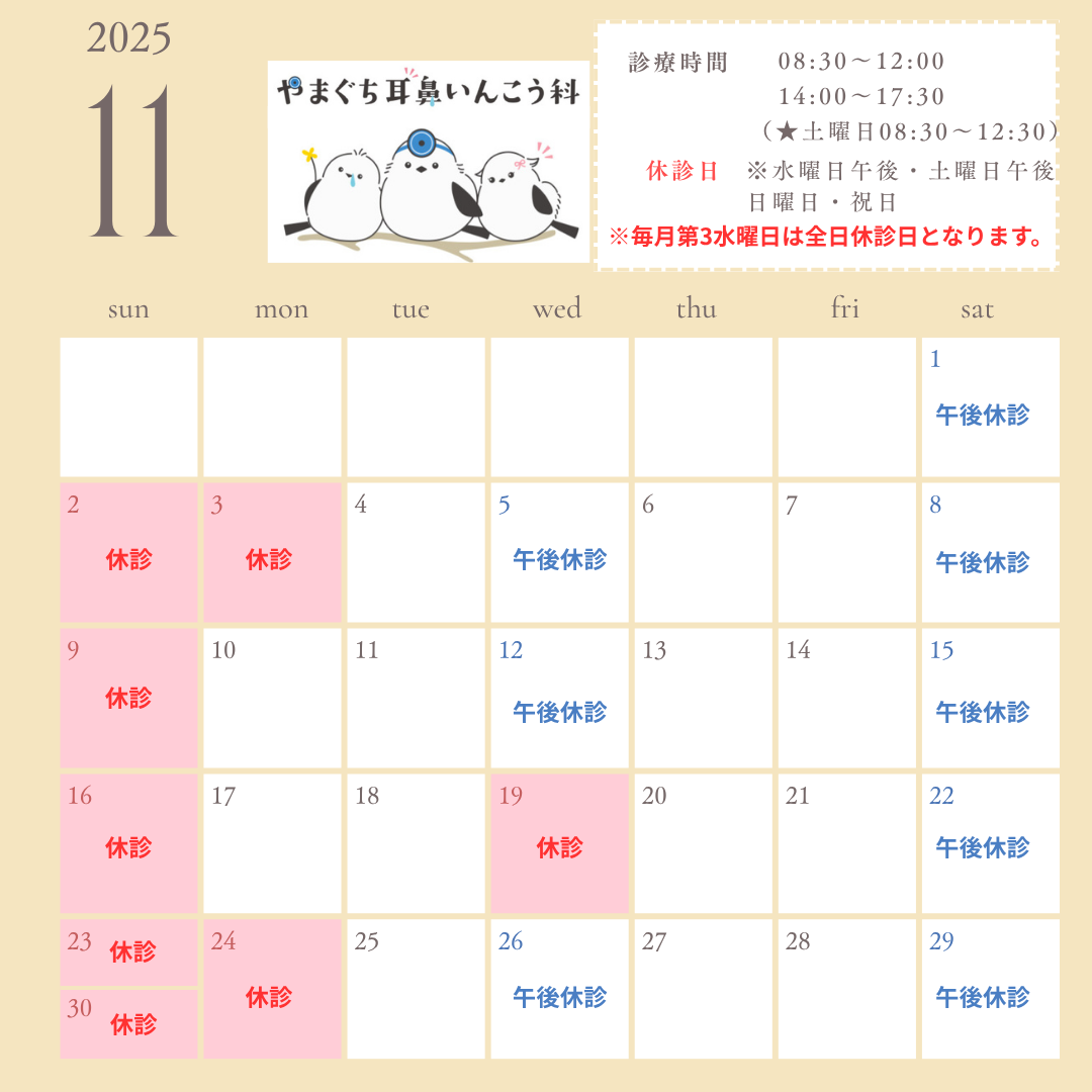 - 11月のカレンダーができました。11月は第3水曜日が全日休診日となります。