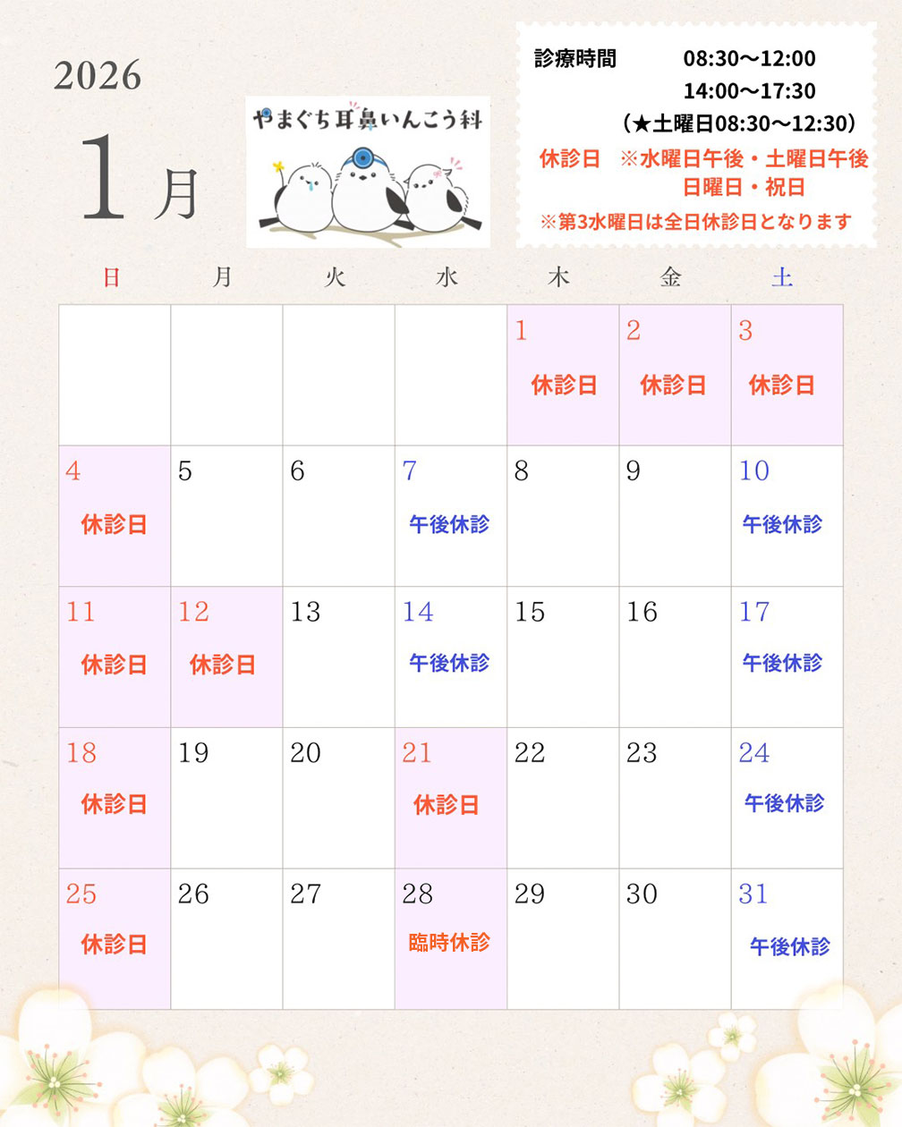 ※毎月第3水曜日は全日休診日となります。